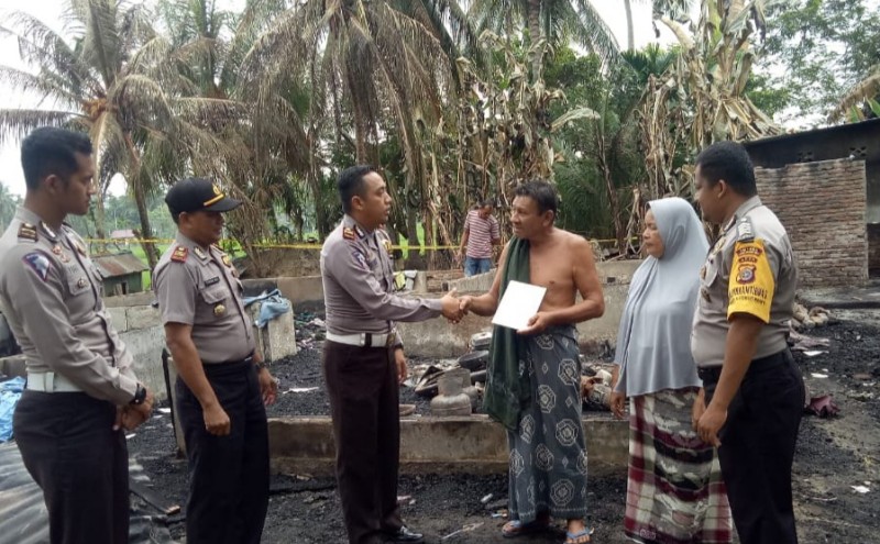 Bantuan tali asih dari Dir Lantas Polda Aceh tersebut diserahkan langsung oleh Kasat Lantas Polres Lhokseumawe AKP Widya Rachmad Jayadi, SH, S.Ik kepada korban T. Said di lokasi kebakaran.