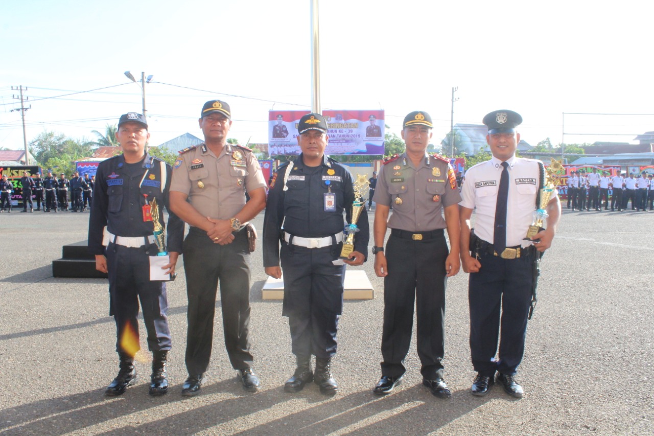 Penyerahan penghargaan diberikan dalam bentuk trofi dan uang pembinaan yang diserahkan langsung oleh Kapolres Lhokseumawe AKBP Ari Lasta Irawan, S.Ik diwakili Wakapolrws Lhokseumawe Kompol Ahzan, S.Ik, SH, MSM usai upacara Hut Satpam yang berlangsung di Mapolrws Lhokseumawe, rabu (22/01/2020) pagi.