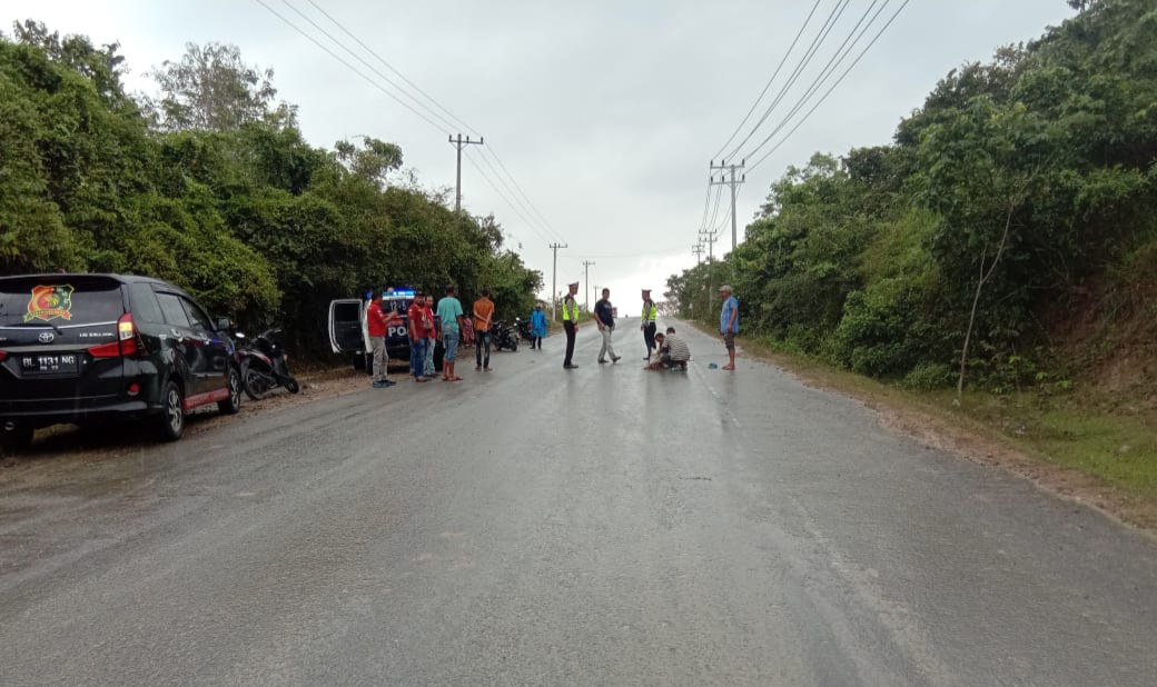 Akibat laka lantas, Nuraini (60) perempuan yang dibonceng di belakang sepeda motor vario meninggal di tempat.