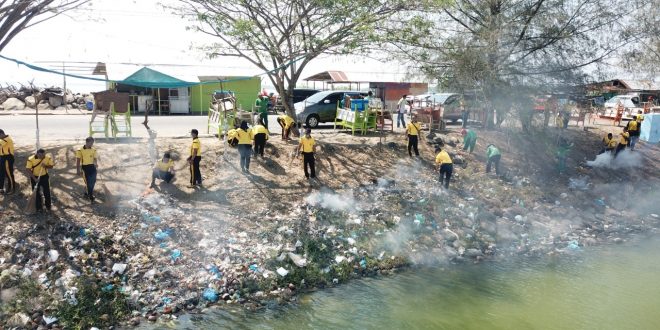 LHOKSEUMAWE- Kapolres Lhokseumawe AKBP Ari Lasta Irawan, S.Ik pimpin langsung gotong royong gabungan dalam rangka mengantisipasi penyebaran virus corona di lingkungan yang diduga dapat menimbulkan penyakit khususnya dikawasan Waduk Pusong Kota Lhokseumawe, sabtu (14/03/2020) pagi.