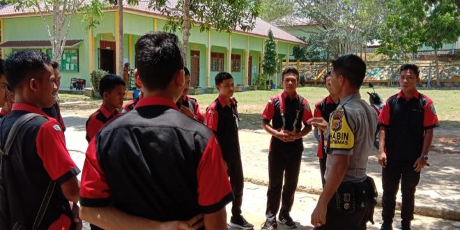 LHOKSEUMAWE- Bhabinkamtibmas Polsek Nisam Bripka Agus Salim melakukan sosialisasi penerimaan anggota Polri di SMKN 1 Nisam, Senin (16/03/2020) pukul 12.30 Wib
