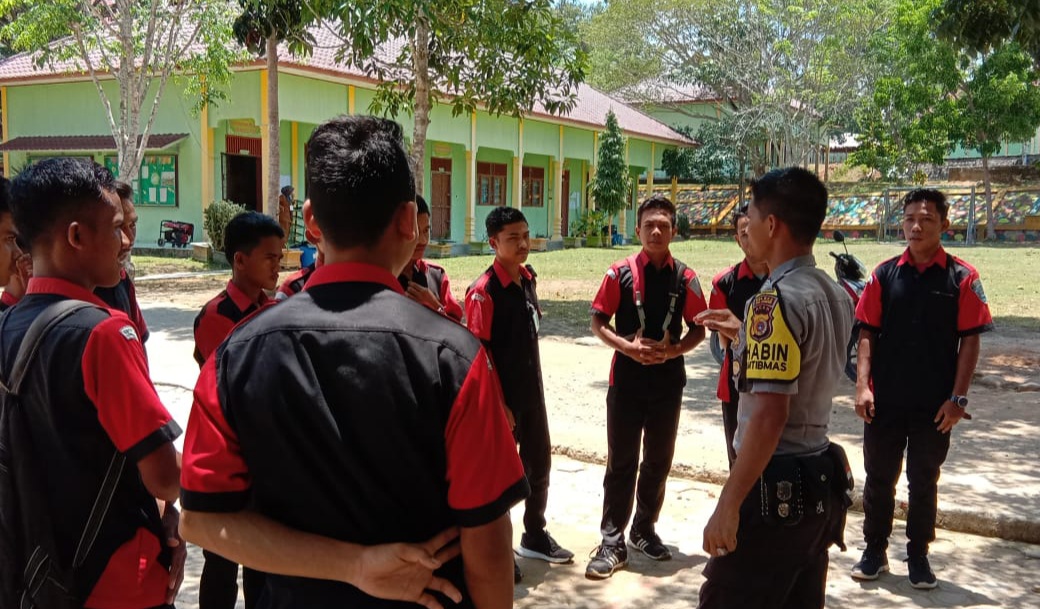 LHOKSEUMAWE- Bhabinkamtibmas Polsek Nisam Bripka Agus Salim melakukan sosialisasi penerimaan anggota Polri di SMKN 1 Nisam, Senin (16/03/2020) pukul 12.30 Wib