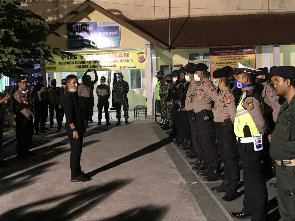 LHOKSEUMAWE- Polres Lhokseumawe melakasnakan Apel pasukan dan patroli gabungan dqlam rangka menindak lanjuto seruan bersama forkopimda Aceh