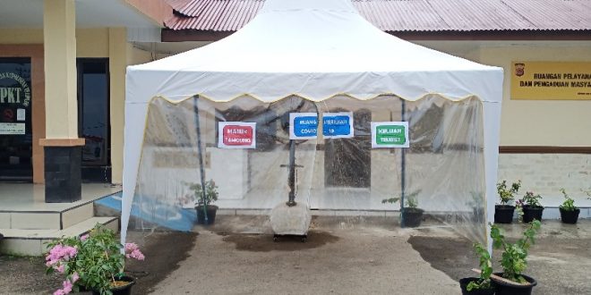 LHOKSEUMAWE– Polres Lhokseumawe menyediakan bilik sterilisasi bagi personil dan masyarakat yang berkunjung dalam rangka mencegah penyebaran virus Covid-19 di Mapolres Lhokseumawe.