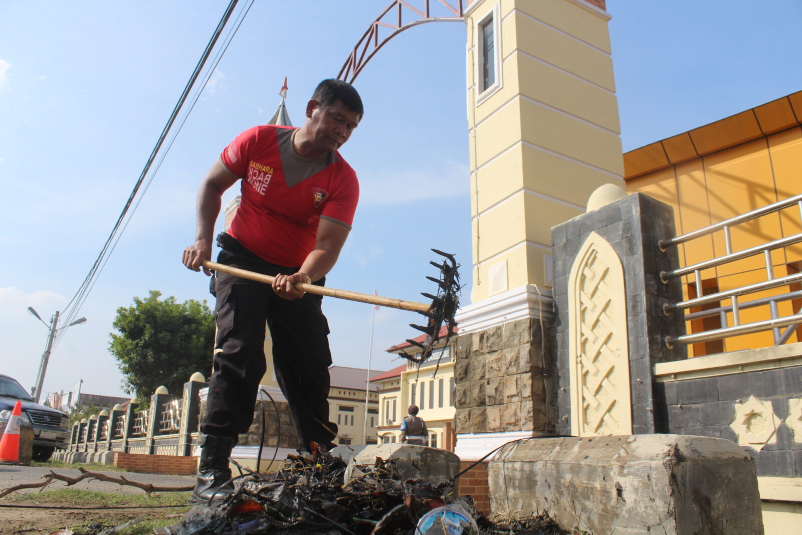 Kapolres Lhokseumawe AKBP Ari Lasta Irawan, S.Ik melalui Wakapolres Lhokseumawe Kompol Ahzan, S.Ik, SH, MSM menyebutkan, hari ini kita akan melaksanakan TR perintah pimpinan untuk melaksanakan curve hari kedua dalam rangka bakti sosial pembersihan Mako Polres Lhokseumawe yang bertujuan agar terhindar dari virus corona.