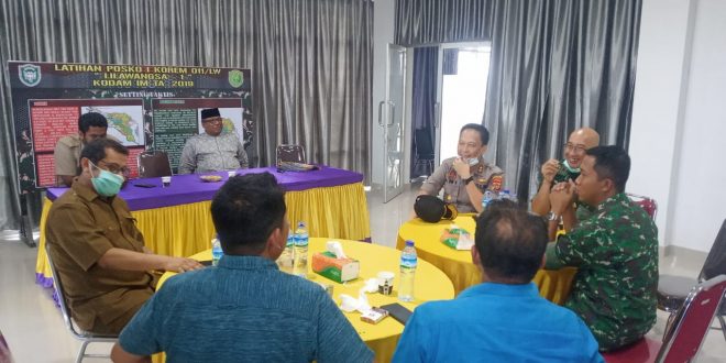 HOKSEUMAWE- Kapolres Lhokseumawe hadiri rapat kordinasi penanggulangan Covid 19 bersama dengan forkopimda setemoat di Posko gugus tugas Covid 19 Desa Kandang Kec. Muara Dua Kota Lhokseumawe, Selasa (24/03/ 2020) Sore.