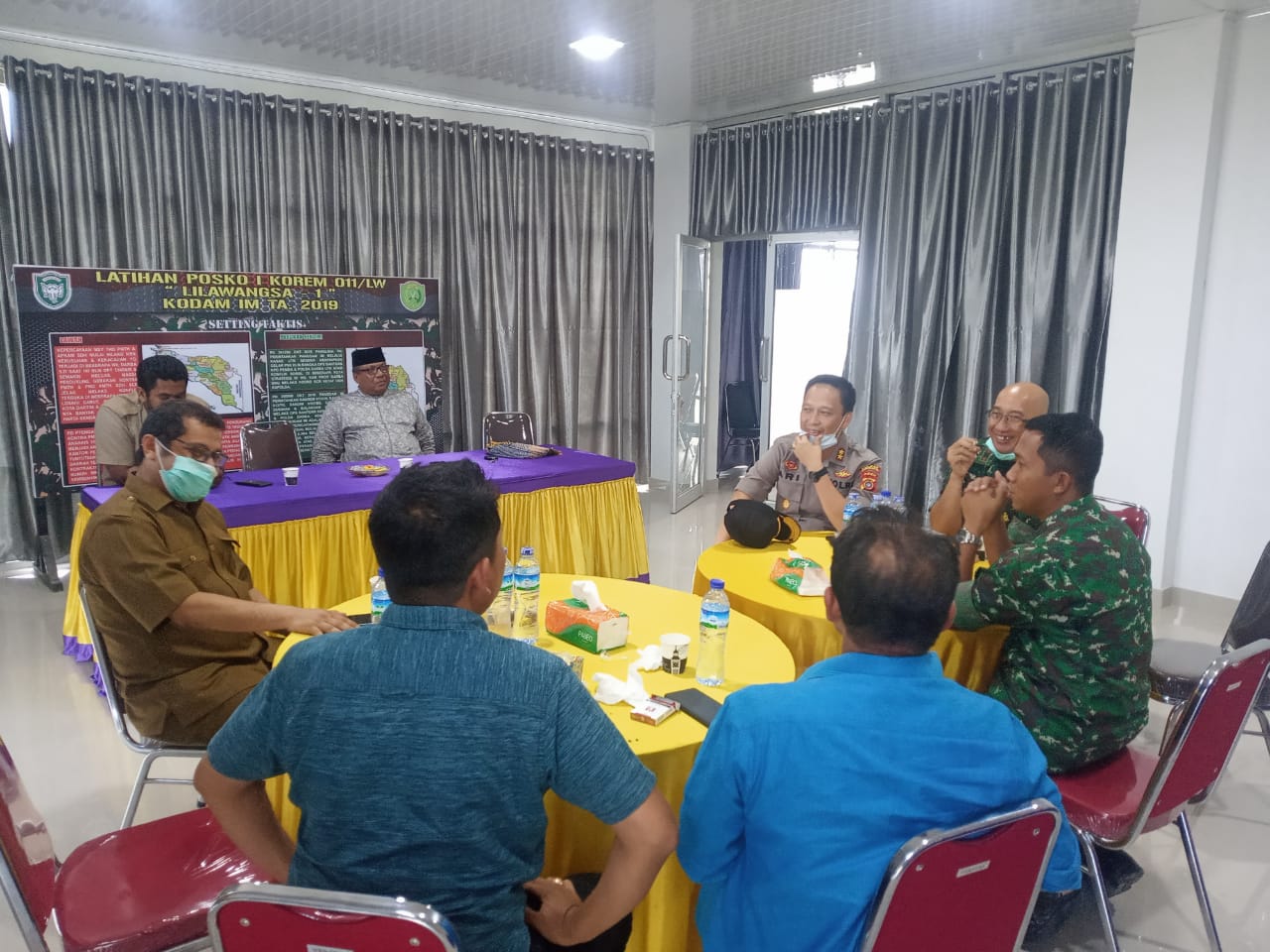HOKSEUMAWE- Kapolres Lhokseumawe hadiri rapat kordinasi penanggulangan Covid 19 bersama dengan forkopimda setemoat di Posko gugus tugas Covid 19 Desa Kandang Kec. Muara Dua Kota Lhokseumawe, Selasa (24/03/ 2020) Sore.