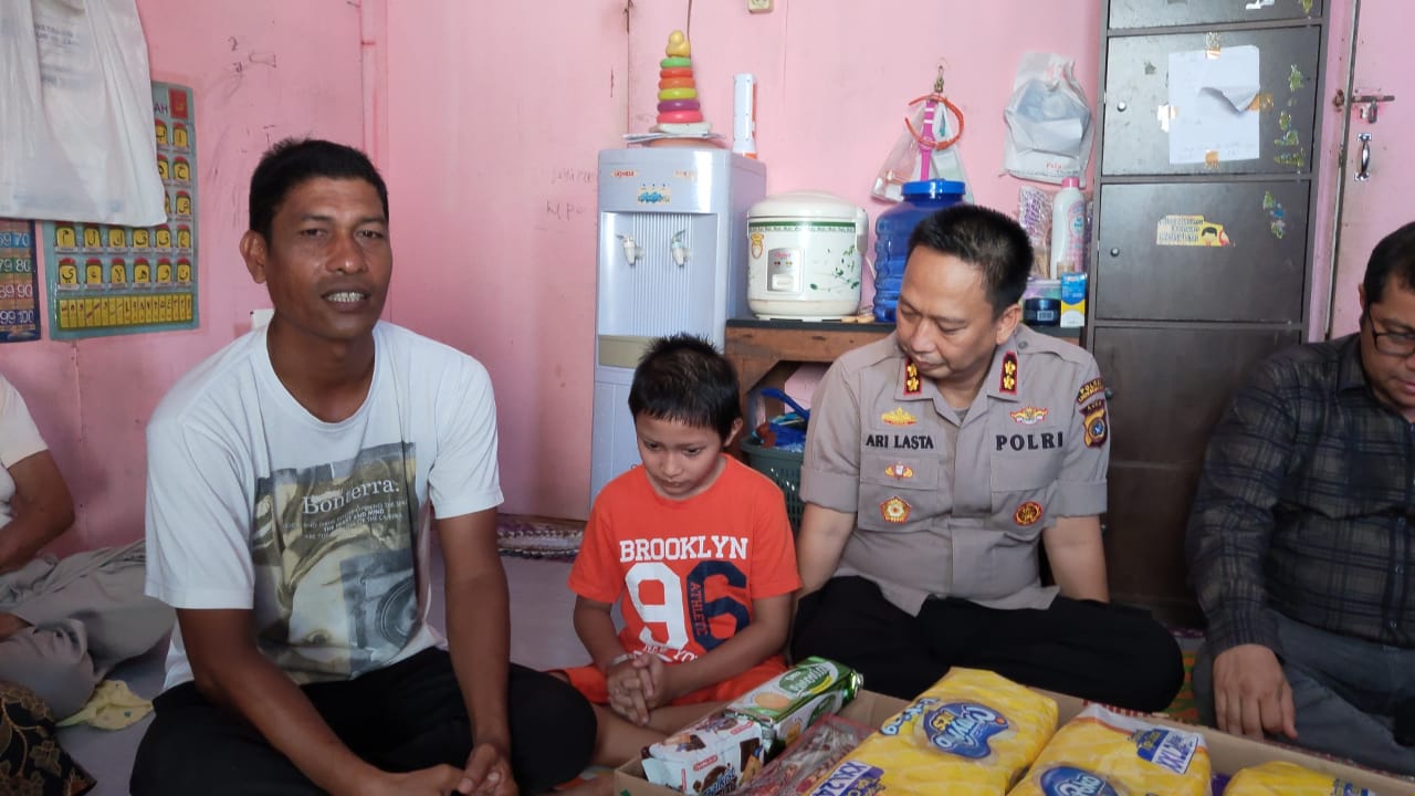LHOKSEUMAWE- Jum’at Barakah, Kapolres Lhokseumawe AKBP Ari Lasta Irawan, S.Ik luangkan waktu untuk kembali mengunjungi seorang anak penderita lumpuh di Desa Hagu selatan Kec. Banda sakti Kota Lhokseumawe, Jum’at (13/03/2020) pagi.