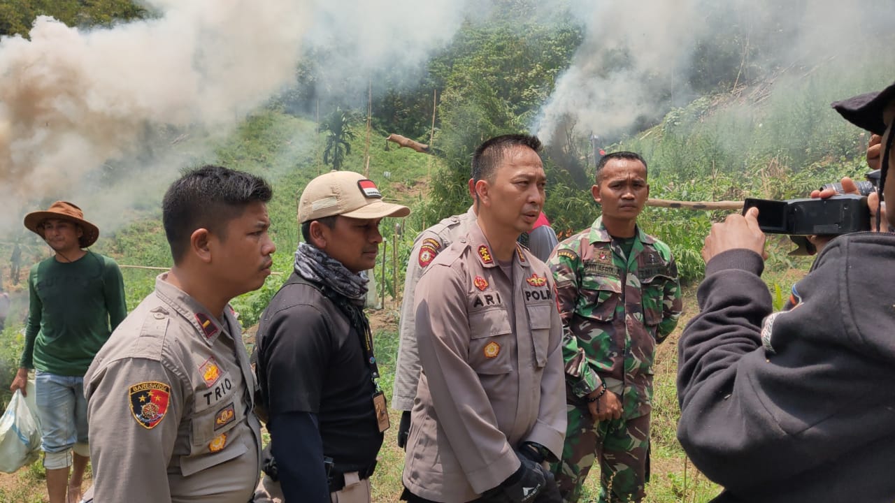 “Ladang yang ditemukan mencapai delapan hektar dan tidak merata di satu lokasi karna menyebar dibeberapa bukit. Sedangkan tersangka dan pemilik lahan masih dalam proses pengejaran, kita sudah dua hari mengintai namun pelaku sepertinya sudah mengetahui keberadaan petugas,” jelasnya.