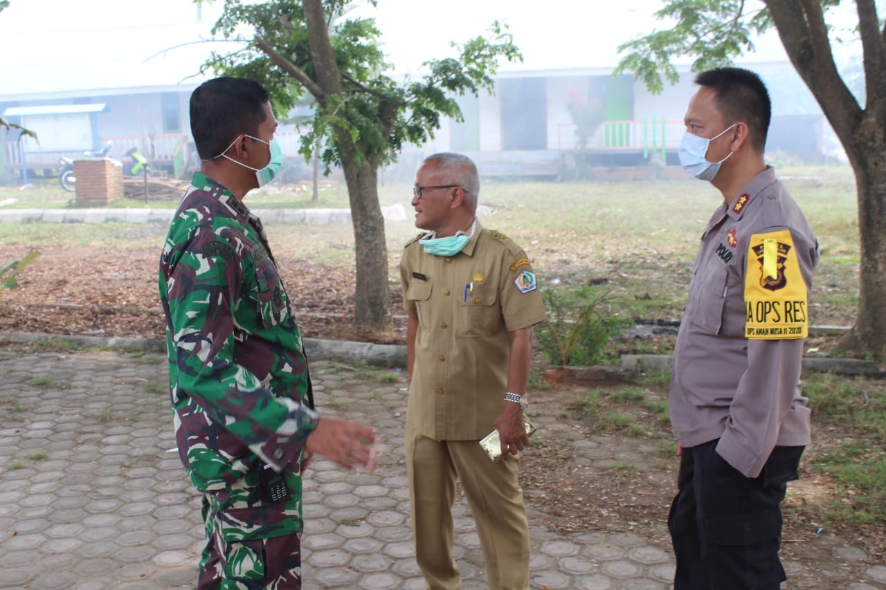 LHOKSEUMAWE- Kapolres Lhokseumawe AKBP Ari Lasta Irawan, S.Ik dan Dandim Dandim 0103 Aceh Utara Letkol Inf. Agus Sukoco SH memantau langsung gotong royong (Gotroy) TNI-Polri di Integrad Community Shelter (ICS) Rohingya di Blang Adoe, Kecamatan Kuta Makmur, Aceh Utara, Jumat (27/3/2020)