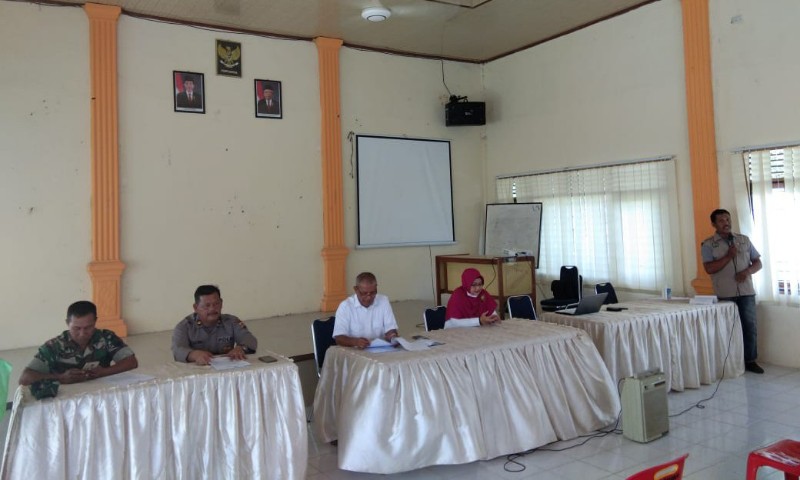 LHOKSEUMAWE- Kapolsek Kuta Makmur hadiri rapat penanganan pencegahan covid-19 sumber Dana Desa di Kantor Camat Kuta Makmur, Kabupaten Aceh Utara, rabu (01/04/2020) pagi.