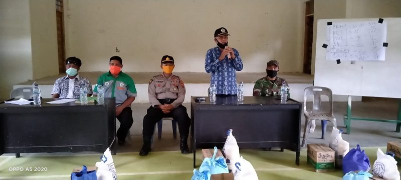 LHOKSEUMAWE- Kasubsektor Geurudong Pase IPDA Tukiman pantau langsung penyaluran bantuan sembako pemerintah kepada warga terdampak Covid-19 di Gampong Suka Damai Kec. Grd Pase Kab. Aceh Utara, kamis (23/04/2020).