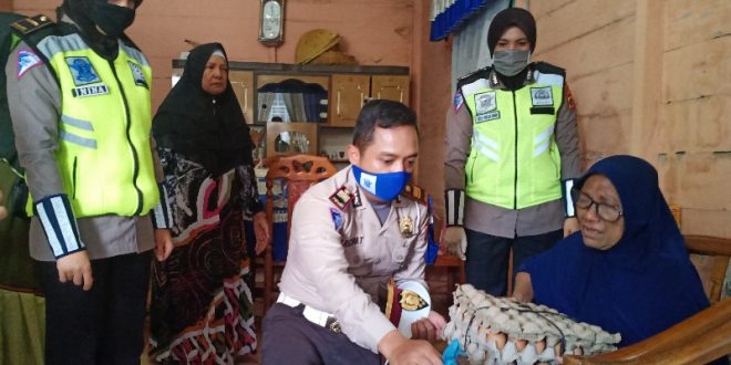 LHOKSEUMAWE- Polantas Polres Lhokseumawe melaksanakan bakti sosial Jum’at barokah dengan memberikan sembako dan santunan kepada sejumlah orang tua jumpo, anak yatim, Dhuafa dan Muallaf di Kota Lhokseumawe, Jum’at (10/04/2020).