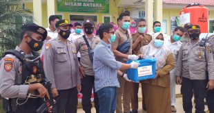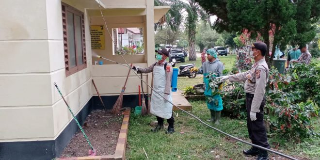 Kapolres Lhokseumawe AKBP Ari Lasta Irawan, S.Ik melalui Kasubsektor Nisam Antara IPDA Ridwan mengatakan, penyemprotan Desinfektan untuk mensterilisasi dan menetralisir penyebaran Virus Covid -19.