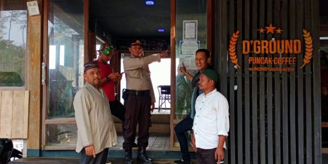 LHOKSEUMAWE- Polisi Subsektor Nisam Antara menyambangi kawasan wisata gunung salak melakukan patroli dialogis kepada pemilik penyedia caffe dalam rangka tindak lanjut Maklumat Kapolri guna mencegah penyebaran covid-19.