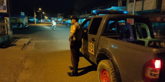LHOKSEUMAWE- Personil Polsek Kuta Mamur tingkatlan patroli dalam rangka diberlakukannya jam malam oleh Forom koordinasi pimpinan Daerah Aceh di wilayah kec.Kuta Makmur guna antisipasi mewabahnya virus corona / Covid 19, rabu (01/04/2020) malam.
