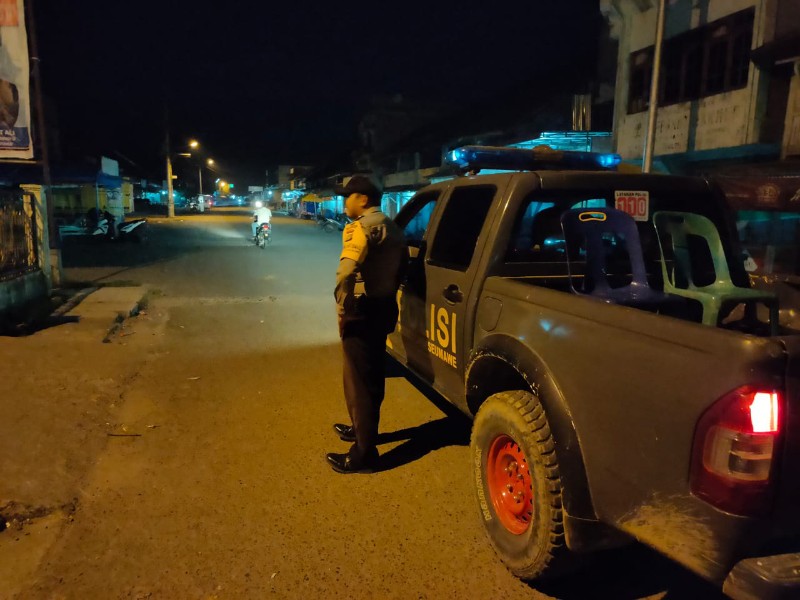 LHOKSEUMAWE- Personil Polsek Kuta Mamur tingkatlan patroli dalam rangka diberlakukannya jam malam oleh Forom koordinasi pimpinan Daerah Aceh di wilayah kec.Kuta Makmur guna antisipasi mewabahnya virus corona / Covid 19, rabu (01/04/2020) malam.