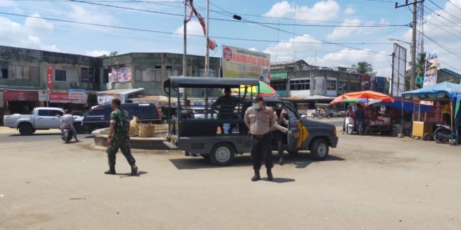 LHOKSEUMAWE- Cegah penyebaran virus covid-19, Polsek Samudera bersama TNI setempat melakukan sosialisasi pemakaian masker untuk semua dalam rangka mencegah penyebaran virus covid-19 di walayah Samudera Kabupaten Aceh Utara, senin (06/04/2020).