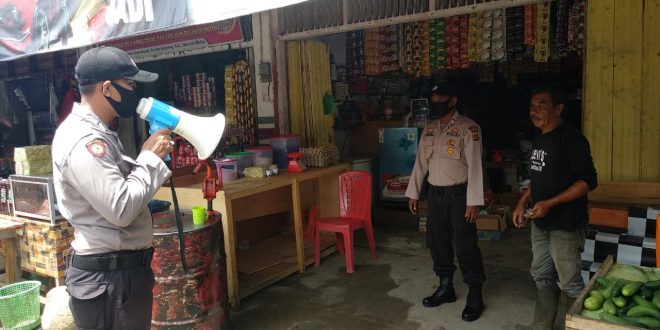 LHOKSEUMAWE- Personil Polsek Meurah Mulia terus meningkatkan patroli dalam rangka menyampaikan Himbauan tentang social distancing dan physical distancing guna mencegah penyebaran pandemi Corona Virus (covid 19) di Kec. Meurah Mulia, Selasa (12/05/2020) pagi.