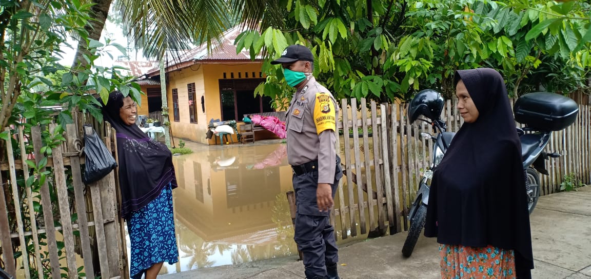 LHOKSEUMAWE- Bhabinkamtibmas Polsek Muara Batu pagi ini memantau situasi kamtibmas terhadap warga yang terdampak banjir di desa Pante Gurah Kec. Muara Batu Kab. Aceh Utara, Selasa (11/05/2020) Sekira Pukul 08.00 WIB.