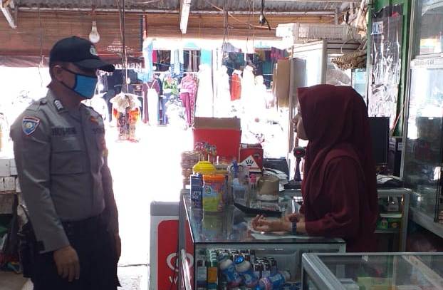 LHOKSEUMAWE- Personil Polsek Nisam melakukan Patroli Pengecekan harga Sembako di pasar Tradisional Kecamatan Nisam di tengah wabah virus covid-19, , Sabtu (16/05/2020) sekira pukul 11.30 WIB.