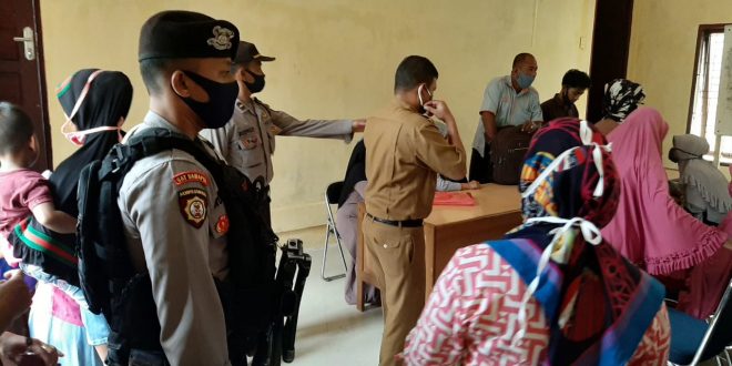 LHOKSEUMAWE – Tim URC Satuan Sabhara Polres Lhokseumawe kawal penyaluran bantuan sosial tunai (BST) tahun 2020 yang disalurkan melalui pihak kantor Pos Lhokseumawe yang berlangsung di Kantor Camat Kecamatan Nisam Kabupaten Aceh Utara, Senin (18/05/2020) pukul 08.00 WIB.