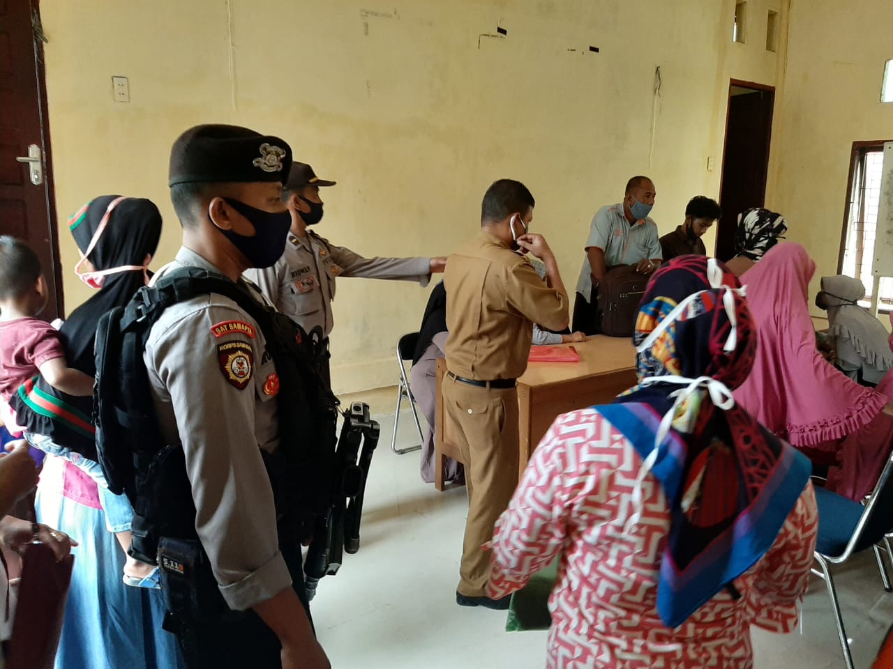 LHOKSEUMAWE – Tim URC Satuan Sabhara Polres Lhokseumawe kawal penyaluran bantuan sosial tunai (BST) tahun 2020 yang disalurkan melalui pihak kantor Pos Lhokseumawe yang berlangsung di Kantor Camat Kecamatan Nisam Kabupaten Aceh Utara, Senin (18/05/2020) pukul 08.00 WIB.