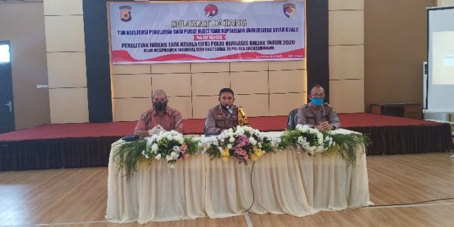 LHOKSEUMAWE- Tim Asistensi dari pusat riset ilmu kepolisian universitas syiah kuala melakukan riset dalam rangka indeks tata kelola (ITK) Polri berbasis online tahun 2020 oleh responden internal dan eksternal yang berlangsung digedung serbaguna Polres Lhokseumawe, Jum’at (08/05/2020) pagi.