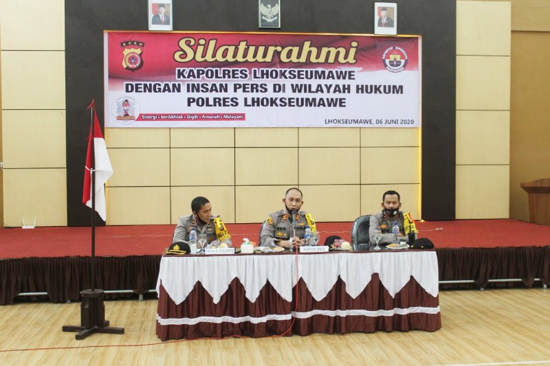 Lhokseumawe – Kapolres Lhokseumawe AKBP Eko Hartanto, S.I.K, M.H menggelar acara silaturrahmi dengan insan pers (wartawan) di gedung serbaguna Wira Satya Polres Lhokseumawe , Sabtu (06/06/2020) pagi.
