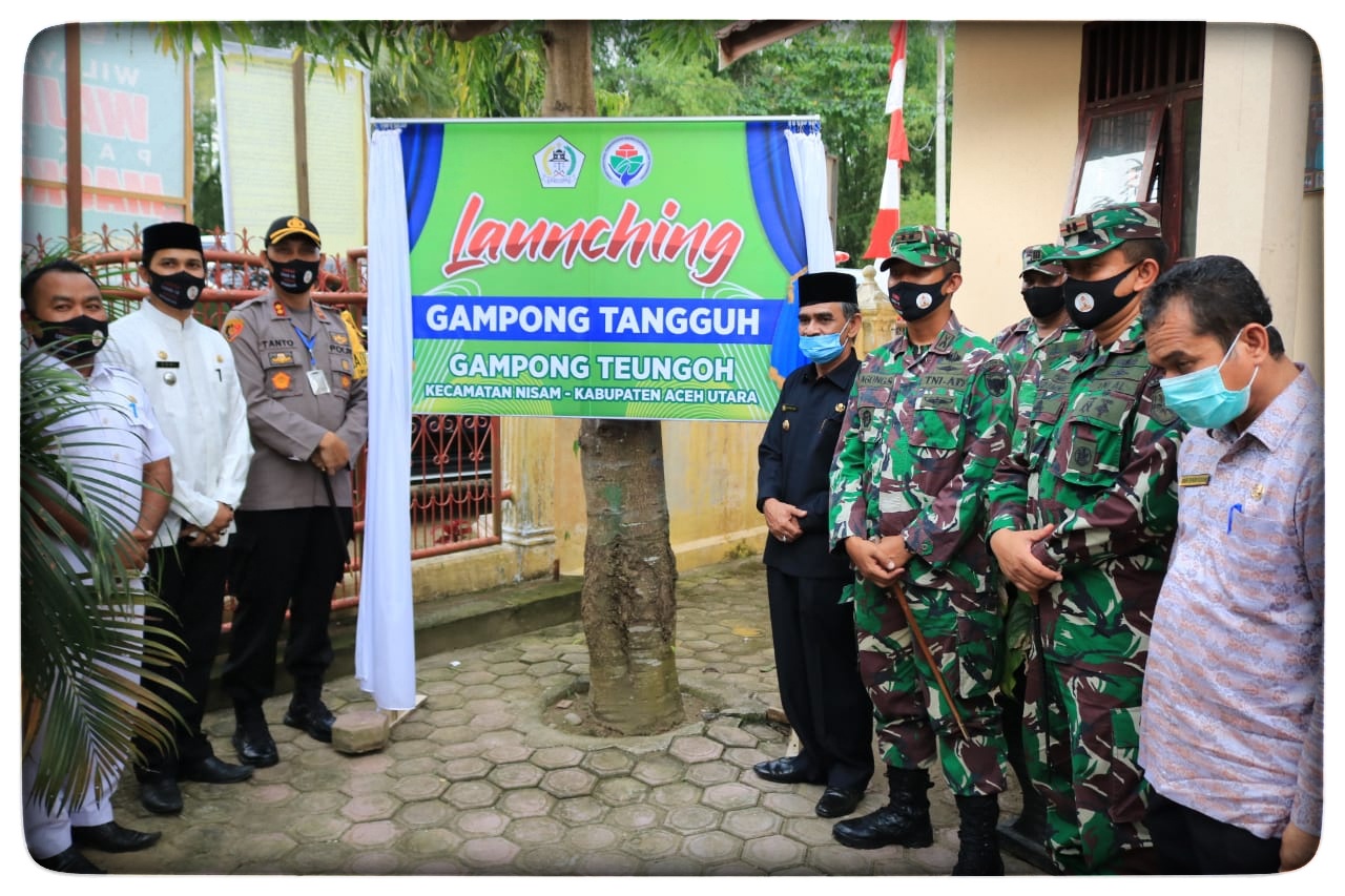 LHOKSEUMAWE- Kapolres Lhokseumawe AKBP Eko Hartanto, S.I.K, MH bersama Forkopimda meresmikan kampong tangguh Desa Tengoh, Kec. Nisam, Kab. Aceh Utara, Jum’at (27/06/2020) sore.