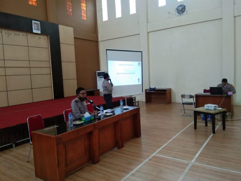 LHOKSEUMAWE- Polres Lhokseumawe menggelar sosialisasi aplikasi sistem informasi klasifikasi kesatuan kewilayahan (SIK3) kepada operator Polres dan Polsek Jajaran Polres Lhokseumawe yang berlangsung di gedung Serbaguna Polres Lhokseumawe, selasa (02/06/2020) pagi.