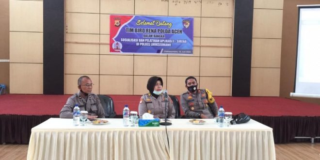 LHOKSEUMAWE- Tim Biro Rena Polda Aceh gelar sosialisasi dan pelatihan aplikasi E-Sirena di Mapolres Lhokseumawe, selasa (16/06/2020).