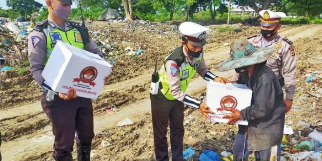 Kali ini, Satlantas membagikan paket sembako kepada masyarakat yang sehari-hari menjadi pemulung sisa limbah rumah tangga di Tempat Pembuangan Akhir (TPA) Alue Lim, Kecamatan Blang Mangat, Kota Lhokseumawe.
