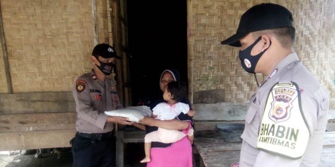 LHOKSEUMAWE- Polsek Nisam melaksanakan kegiatan pembagian sembako di Desa Alue Bili, Kec. Nisam, Kab. Aceh Utara wilayah hukum Polres Lhokseumawe, Selasa (28/07/2020) sekira pukul 09.00 WIB.