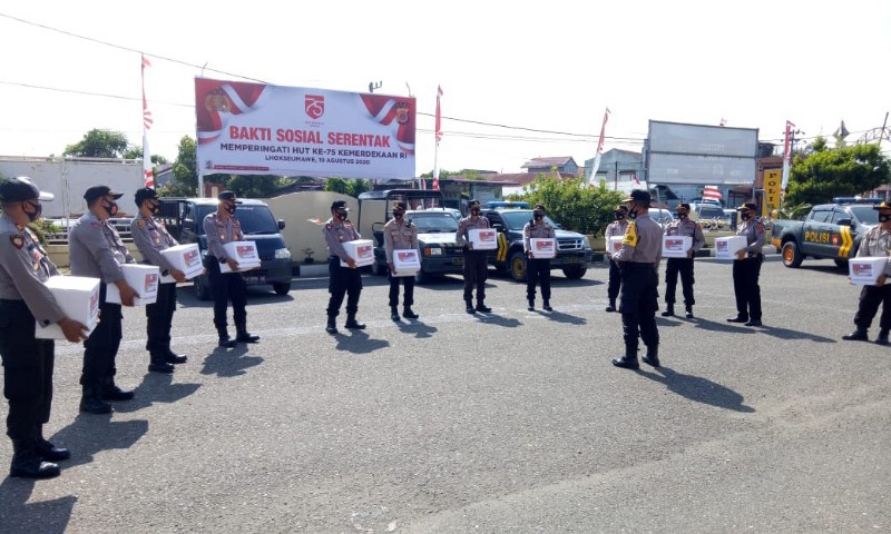 Kapolres Lhokseumawe AKBP Eko Hartanto, S.IK, MH melalui Kasubag Humas Salman Alfarasi menyampaikan, kegiatan bakti sosial yang dilaksanakan secara serentak di seluruh Indonesia ini khususnya di wilayah hukum Polres Lhokseumawe merupakan wujud nyata kepedulian Polri terhadap masyarakat yang terdampak langsung pandemi Covid-19.