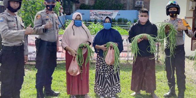 Kapolres Lhokseumawe AKBP Eko Hartanto, S.IK, MH melalui Kapolsek Meurah Mulia IPDA Sirya Ikbal, SH mengatakan, sayur dipanen hari ini adalah sayur kacang panjang yang dipanen dari lokasi penanaman sayur yang memanfaatkan lahan kosong di sekitar Polsek Meurah Mulia.