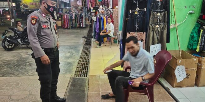 LHOKSEUMAWE – Patroli dialogis, Polsek Blang Mangat Sosialisasi Adaptasi Kebiasaan Baru kepada sejumlah warga yang beraktivitas di malam hari di kawasan Blang Mangat, Kota Lhokseumawe, selasa (11/08/2020) malam.
