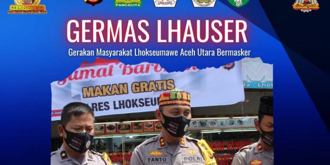 LHOKSEUMAWE- Polres Lhokseumawe menggencarkan pelaksanaan pemakaian masker di lingkungan masyarakat lewat Gerakan Masyarakat Lhokseumawe Aceh Utara Bermasker (GERMAS LHAUSER) dalam rangka meningkatkan kesadaran masyarakat akan pentingnya penggunaan masker untuk mencegah penyebaran Covid-19