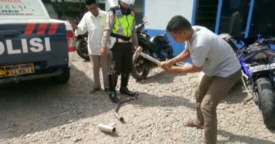LHOKSEUMAWE – Satlantas Polres Lhokseumawe sedang gencar melakukan razia motor yang menggunakan knelpot racing. Selama ini banyak dikeluhkan oleh warga, karena menimbulkan kebisingan.