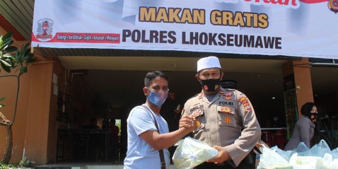 LHOKSEUMAWE- Sejumlah tokoh pemuda mendukung dan mengapresiasi Polres Lhokseumawe dalam terobosan program Jum’at baroqah dengan memberikan paket dan hidangan makan siang gratis yang sudah berlangsung setiap Jum’at di wilayah hukum Polres Lhokseumawe.