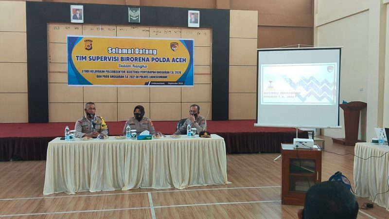 Tim Supervisi yang dipimpin oleh AKBP Chomariasih, SH, MH selaku Kabag Strajemen Birorena Polda Aceh tersebut didampingi 3 anggota dalam rangka studi kelayakan Polsubsektor dan asistensi penyerapan anggaran tahun 2020 serta pagu anggaran tahun 2021 Polres Lhokseumawe.