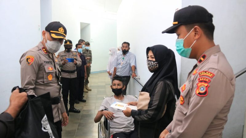 Kepada pasien, Kapolres Lhokseumawe juga menyerahkan santunan dan paket sembako kepada keluarga Ilham.