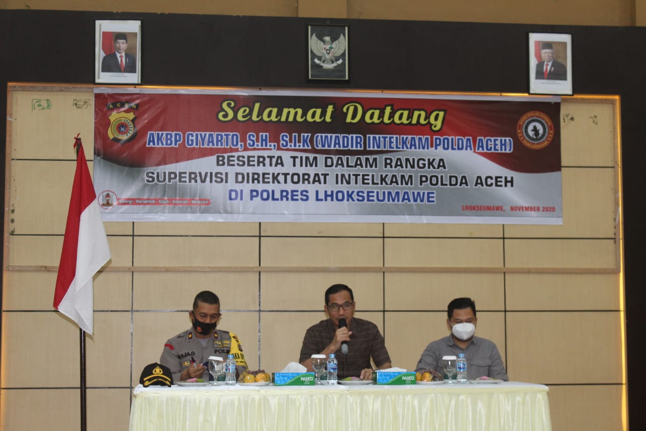 Kunjungan tim supervisi tersebut disambut langsung oleh Kapolres Lhokseumawe AKBP Eko Hartanto, S.IK, MH diwakili Wakapolres Lhokseumawe Kompol Raja Gunawan dan Kasat Intelkam AKP Rizky Kholidiansyah dengan menggelar tatap muka bersama peserta dari sejumlah personil Intelkam dari Polres Lhokseumawe dan Bireuen.