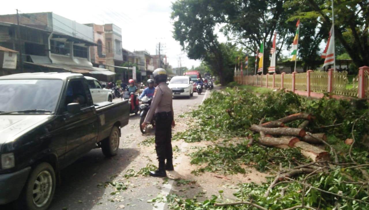 LHOKSEUMAWE – Polsek Blang Mangat melakukan pengaturan lalu lintas tepatnya di depan Kampus Politeknik Negeri Lhokseumawe guna mencegah macet pas tumbangnya sebuah pohon di atas badan jalan, Jumat (20/11/2020).