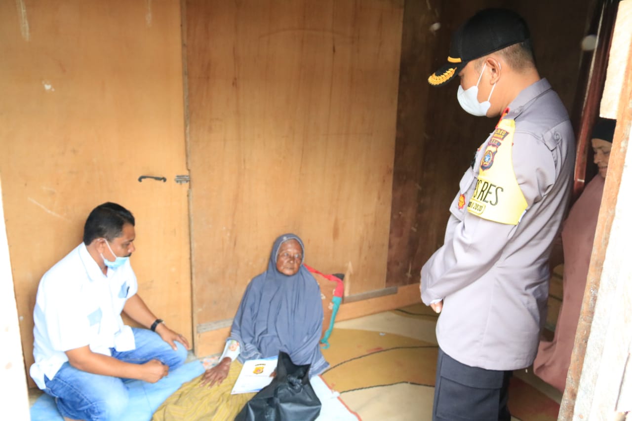 LHOKSEUMAWE – Kapolres Lhokseumawe, AKBP Eko Hartanto, SIk, MH mengunjungi kediaman Ramlah Syam (75 tahun) yang menderita sakit menahun di Desa Blang Poroh, Kecamatan Muara Dua, Kota Lhokseumawe.