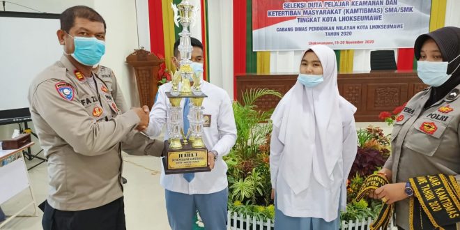 LHOKSEUMAWE – Kapolres Lhokseumawe AKBP Eko Hartanto, SIk, MH diwakili oleh Kasat Binmas, AKP Fazli menghadiri acara seleksi duta pelajar Keamanan dan Ketertiban Masyarakat (Kamtibmas) tingkat Kota Lhokseumawe, kegiatan tersebut berlangsung di Kantor Cabang Dinas Pendidikan wilayah Kota Lhokseumawe, Kamis (19/11/2020).
