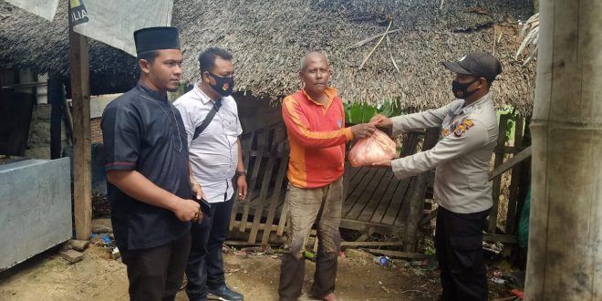 LHOKSEUMAWE – Polsek Meurah Mulia, Aceh Utara, wilayah hukum Polres Lhokseumawe membantu warga di kawasan itu yang terdampak Covid-19 di Desa Ujong Reuba, Kecamatan Meurah Mulia, Selasa (17/11/2020).