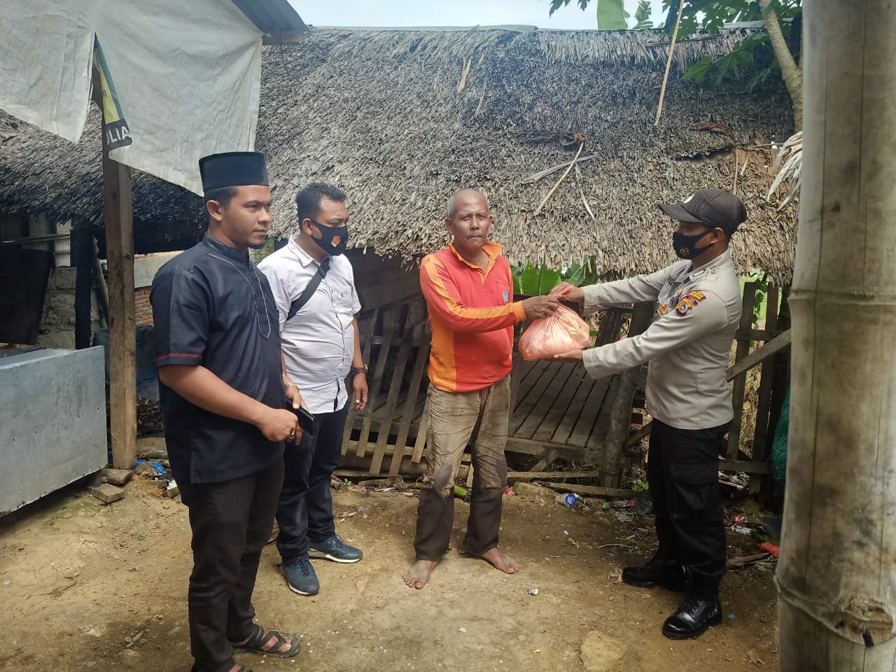 LHOKSEUMAWE – Polsek Meurah Mulia, Aceh Utara, wilayah hukum Polres Lhokseumawe membantu warga di kawasan itu yang terdampak Covid-19 di Desa Ujong Reuba, Kecamatan Meurah Mulia, Selasa (17/11/2020).