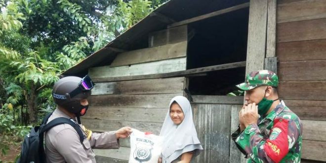 LHOKSEUMAWE – Personil Polsek Muara Batu bersama anggota Koramil Koramil 04, membagikan sembako kepada masyarakat di Gampong Meunasah Lhok, Kecamatan setempat Kabupaten Aceh Utara, wilayah hukum Polres Lhokseumawe, Selasa (17/11)