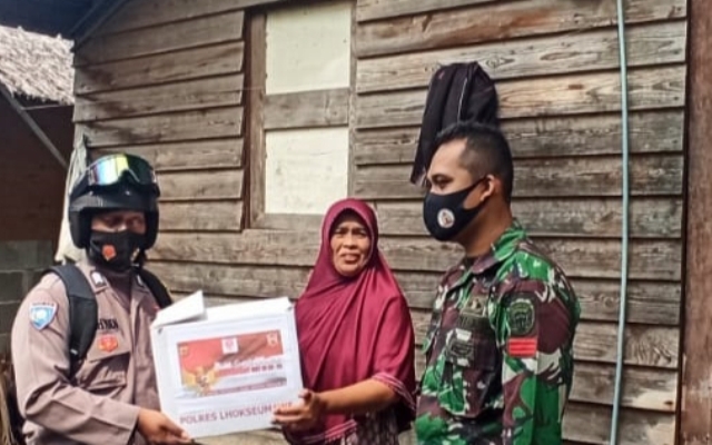 LHOKSEUMAWE – Polsek Muara Batu menyambangi warga kurang mampu, Selasa (24/11/2020). Selain itu, pada kesempatan tersebut personel Polsek Muara Batu juga menyerahkan bantuan sosial berupa sembako guna meringankan beban mereka di masa pandemi Covid-19.